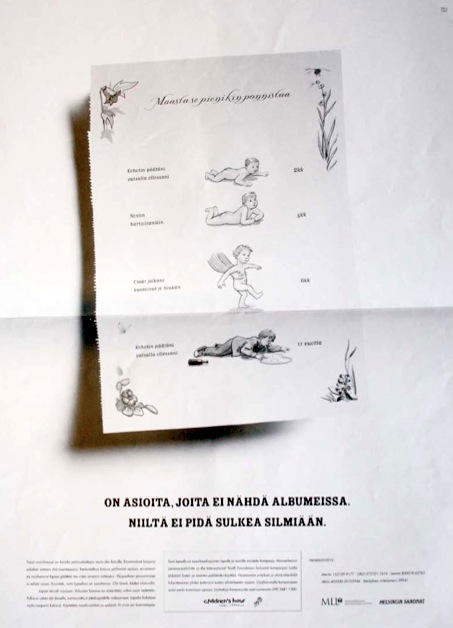 Mannerheim League for Child Welfare ”Baby book” TYÖT, VINTAGE, WORKS The Baby Book -campaign When your kids are growing, there will be times when you might want to close your eyes. Don´t. Be there for your teens, ok? Also when uncomfortable things happen. Aiheeseen liittyy
